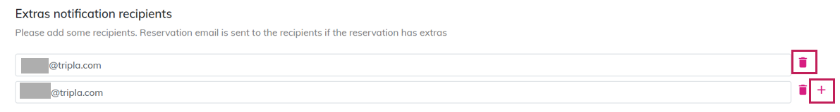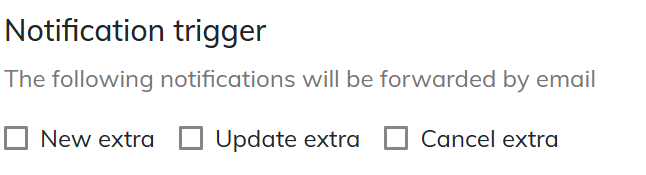 Enter the recipient email address that will receive a notification when a new reservation including extras is created.
