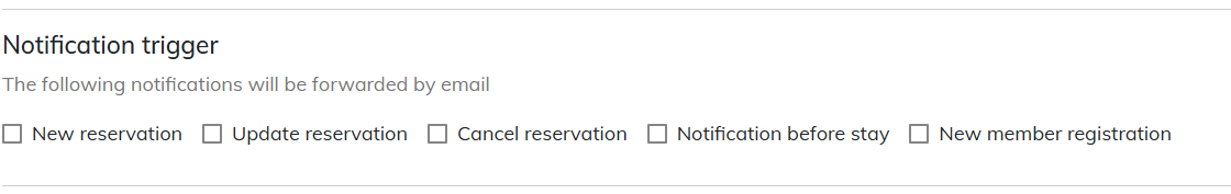 | 1. New reservation | Notification triggered when reservation is complete (confirmed). |