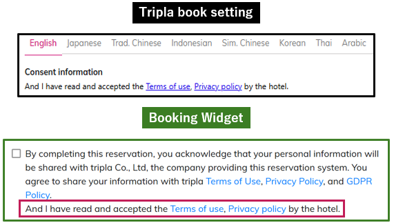 in addition to tripla’s standard terms and conditions — such as the hotel’s Terms of Service, Privacy Policy, or Cookie Policy.