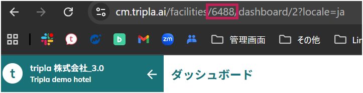 ③ホテルID=Airhostの「OTAプロパティ」>「施設名」右()の数字=tripla Bookの施設ID