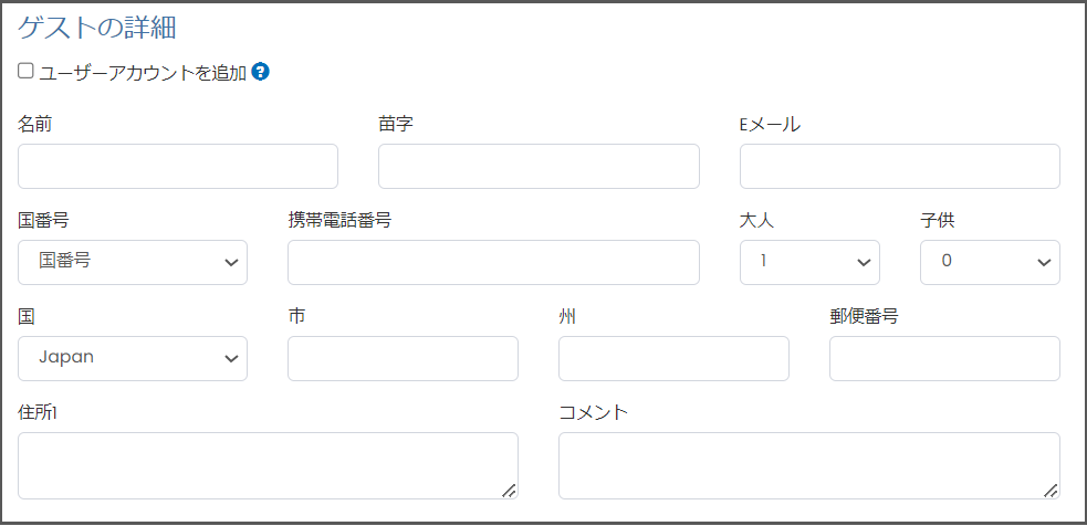 宿泊者情報と予約詳細を入力し、簡単に新しい予約とゲストアカウントを作成できます。
