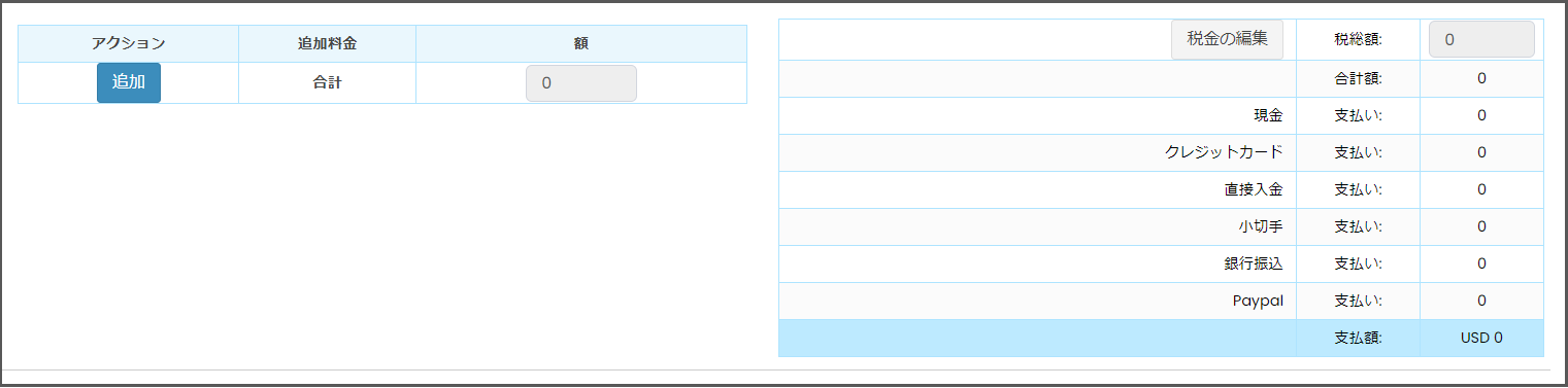 - 税金、合計金額、支払い方法ごとの金額が自動計算されます。