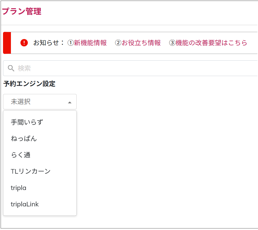 ブランド管理画面から[予約エンジン設定]→[プラン管理]を選択します。